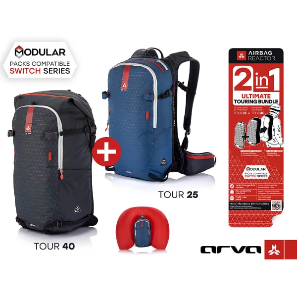 Le SWITCH TOUR BUNDLE (25+40) fabriqué par ARVA est un ensemble comportant le sac à dos Tour 40 Airbag et le Tour 25 Switch Cover. Cet ensemble vous accompagnera lors de vos randonnées hivernales.
